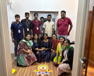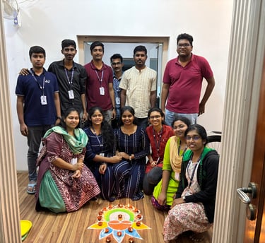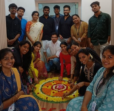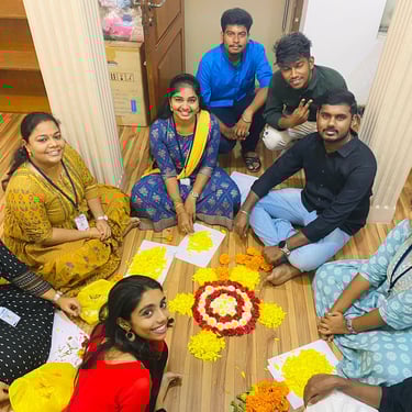 "Get ready to immerse yourself in the cultural vibrancy as the EF Support Team joyfully comes together to celebrate Onam 2023! Decked in traditional attire, our office transforms into a lively haven of colors, adorned with intricate floral decorations that capture the essence of this harvest festival. The highlight of our celebration is the traditional 'Onasadhya' feast, where we gather to savor an array of delicious dishes served on banana leaves, symbolizing unity and abundance.