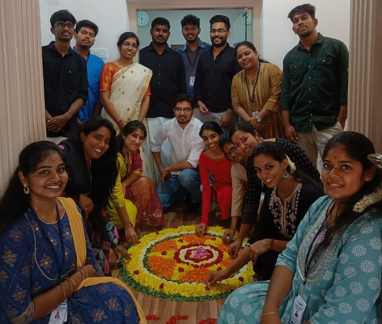 Adding to the festive cheer, our team conducted a variety of engaging activities, from traditional games to cultural performances, creating an atmosphere filled with laughter, joy, and the spirit of togetherness. As we exchange warm wishes, we embrace the rich traditions of Onam, fostering a sense of community and celebration that resonates throughout our workplace. Wishing everyone a heartwarming and prosperous Onam celebration!"